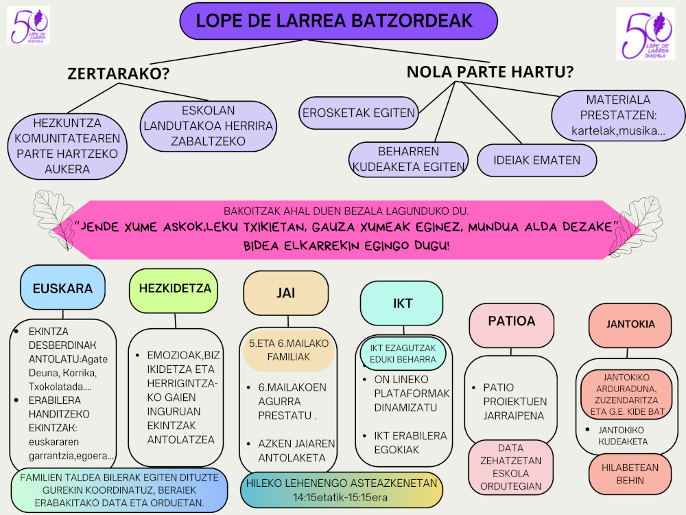 Bilerak hilean behin izaten dira, baina badira bileretatik haratago ere egin daitezkeen gauzak. Guztion laguntza, ideiak eta konplizitatea ezinbestekoak dira. Gure umeak dira! Anima zaitez eta eman ezazu izena!